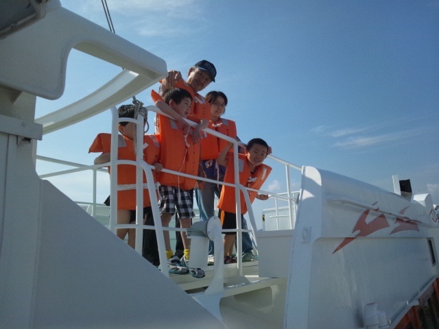 次男はライフジャケットでつぶれてます
