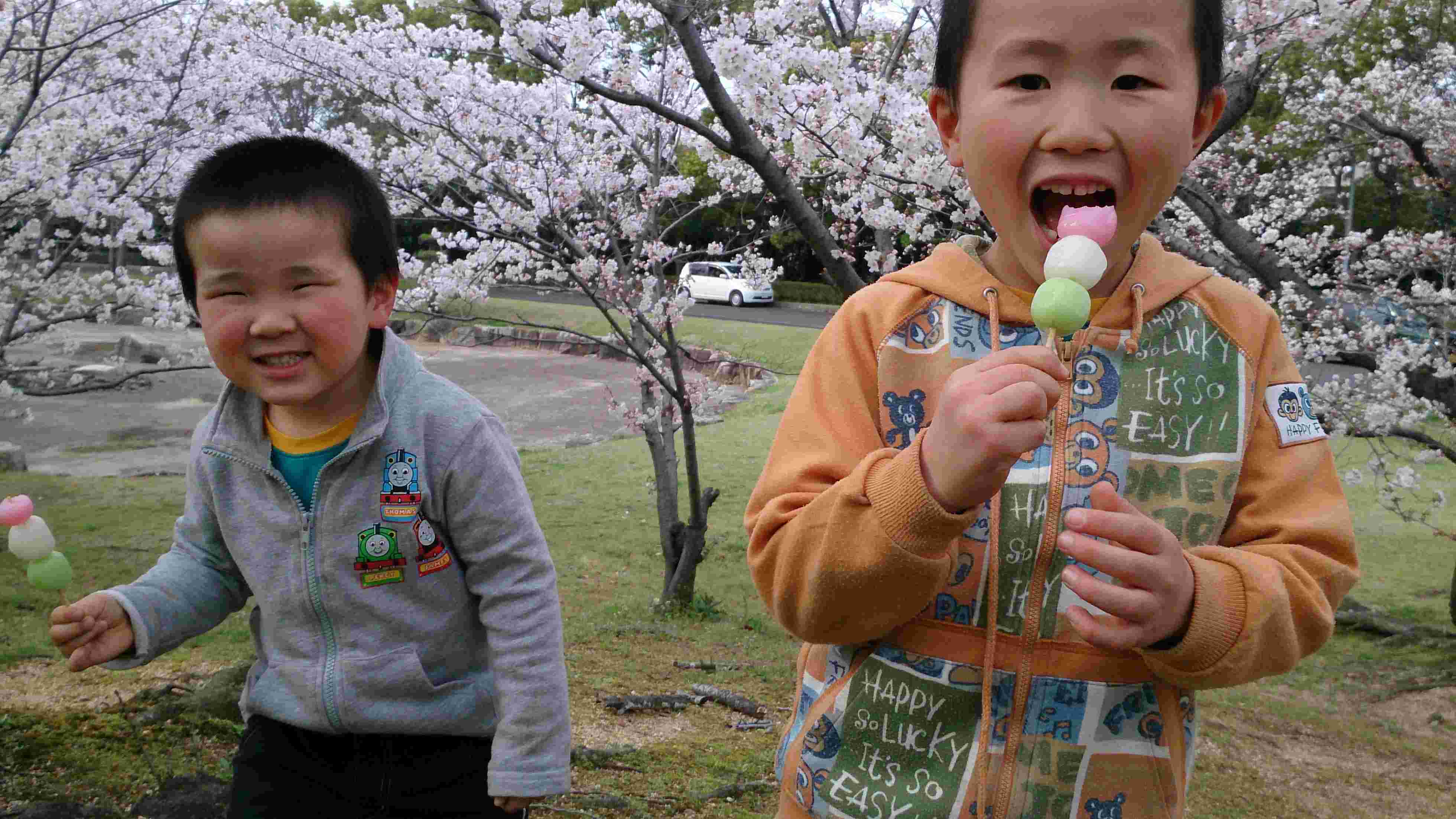 まさしく息子達には花より団子