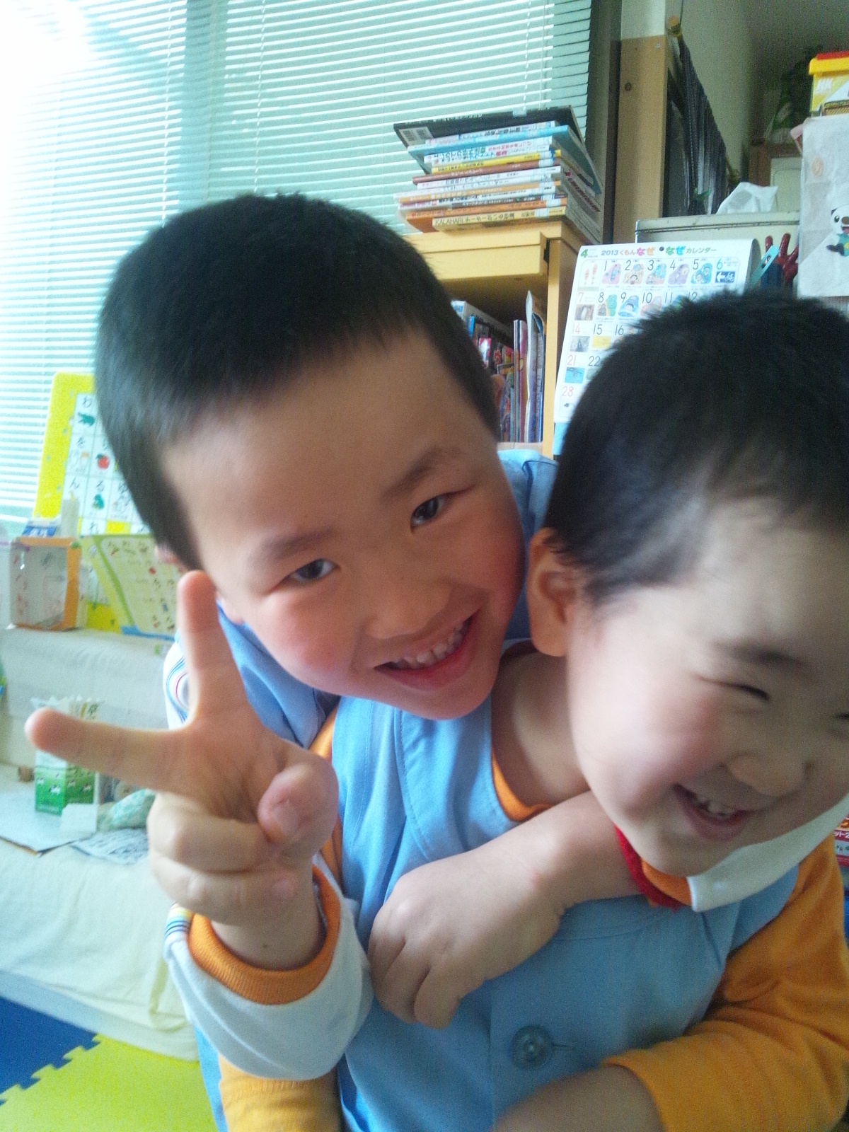 保育園から帰った二人にかぶせると