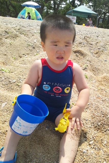 で遊んだ時の笑顔はいずこ…?それでも長男は海の楽しさを思い出し
