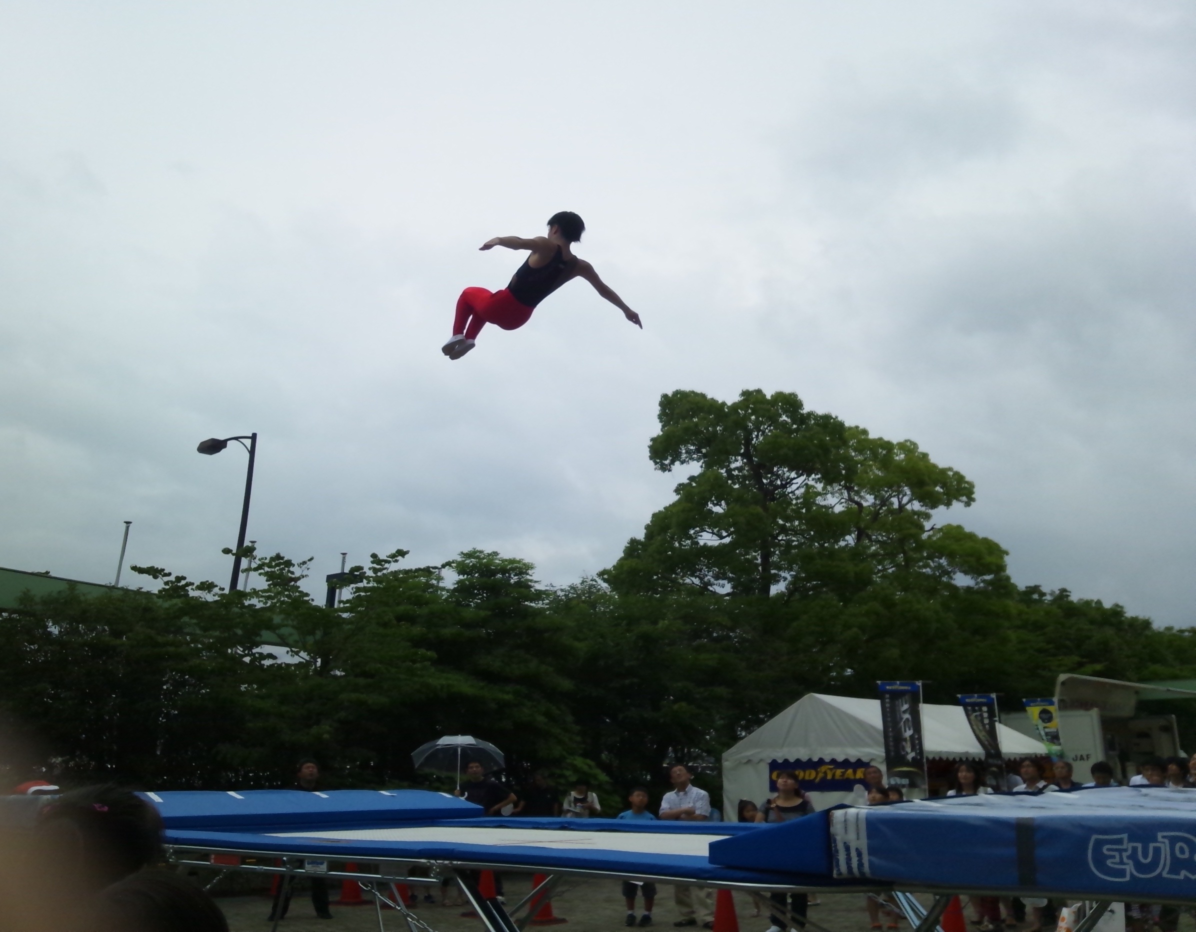 外で演技するのは体育館と違って難しいはず(しかも時々小雨でした)