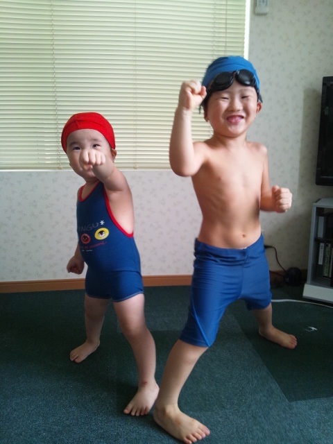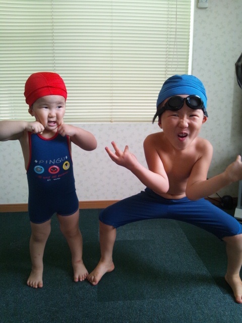 水着を着てノリノリ