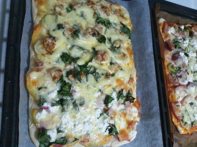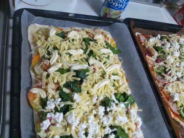 夕食は、みんなでピザを作りました