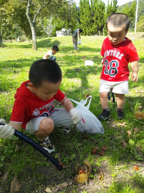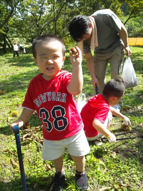 息子達にとって初めての栗拾い