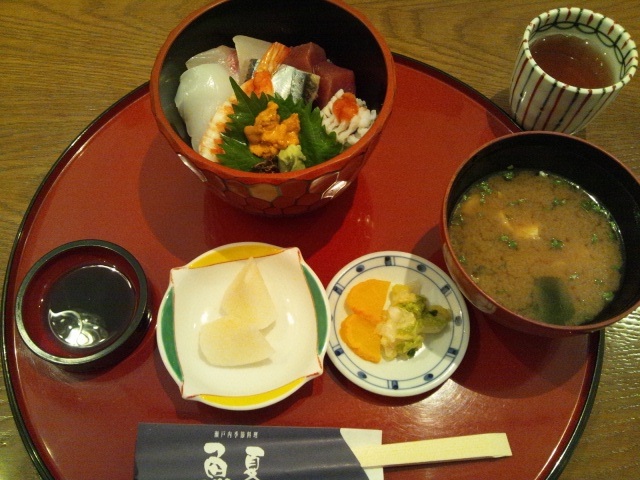 魚夏 の、海鮮丼             主人は穴子の天丼