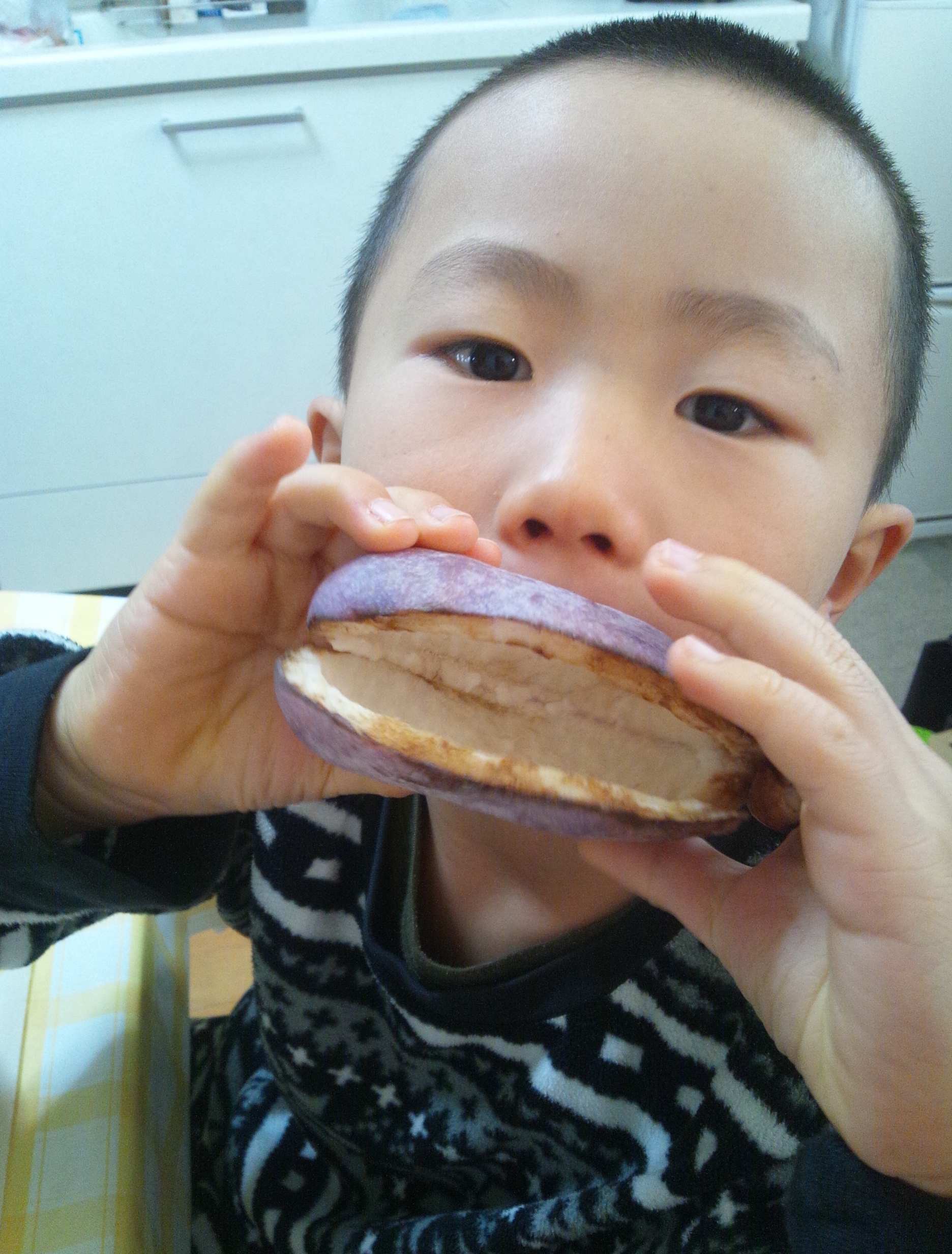 初めて食べた長男は