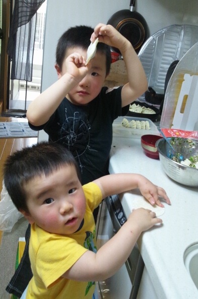 長男も餃子で遊ぶ手伝う気満々